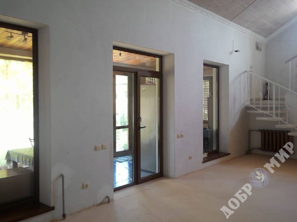 Дом полностью готов к проживанию.3 спальни, 2 кухни, 2 санузла, гостиная с камином.Теплая веранда. Подвал. Высота потолков 3м. Высота потолка в гостиной 4 и 6м.Паровое отопление.Вода. В кооперативе есть газ. На участке каменный гараж с ямой и каменный сарай. Две ёмкости для воды 8м куб и 6м куб, летняя душевая и санузел, сливная яма. Очень удобное расположение и кооператива и участка.Ухоженный сад. Хороший подъезд, 3 мин до моря, 2 - до шоссе. Через дорогу сосновый парк.